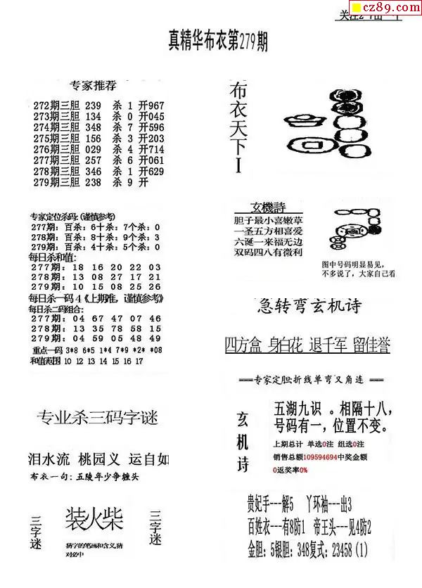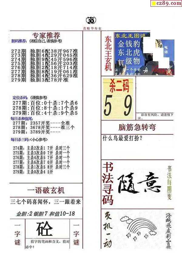 杀手+鑫马快报+字迷汇总25年279期3d图谜