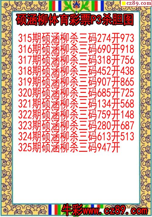> 25年325期硕涵柳体育彩票P3杀胆图