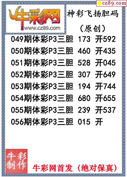 神彩飞扬三胆056期体彩P3图谜(原创)