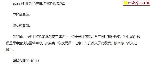 > 25年福彩双色球141期 白玫瑰定蓝球字谜